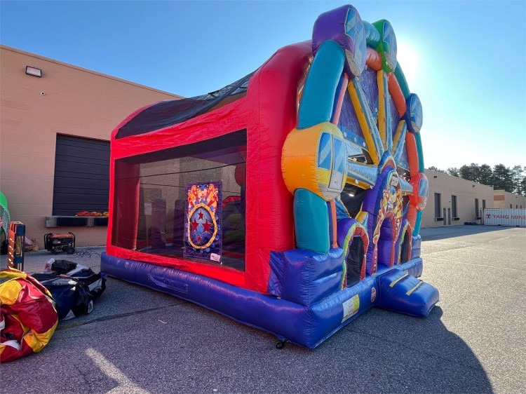 - OCCUPANCY: A maximum of 5-6 kids of equal size at one time for bounce houses, and 1 person at a time for slides is what most inflatable manufacturers recommend.