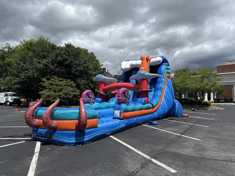 Explore the Deep Sea as you slide down our 20 foot dual extended lane, picking up momentum us you burst into a cool and refreshing pool at the end! This inflatable is perfect for all ages, whether you're cooling off or you're down for some competition! Featuring a generous sliding surface, every individual is ensured a remarkable time! Prepare to plunge into a boundless ocean with our deep sea friends!
